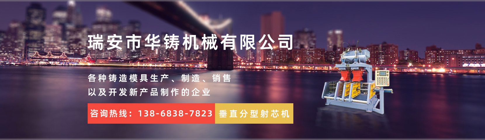 瑞安市華鑄機械有限公司,創(chuàng)建于2014年,位于經濟發(fā)達的機械制造基地——溫州。本公司是一家致力于全自動重力澆鑄機、射芯機殼芯機、覆膜砂設備、各種鑄造模具生產、制造、銷售以及開發(fā)新產品制作的企業(yè)。